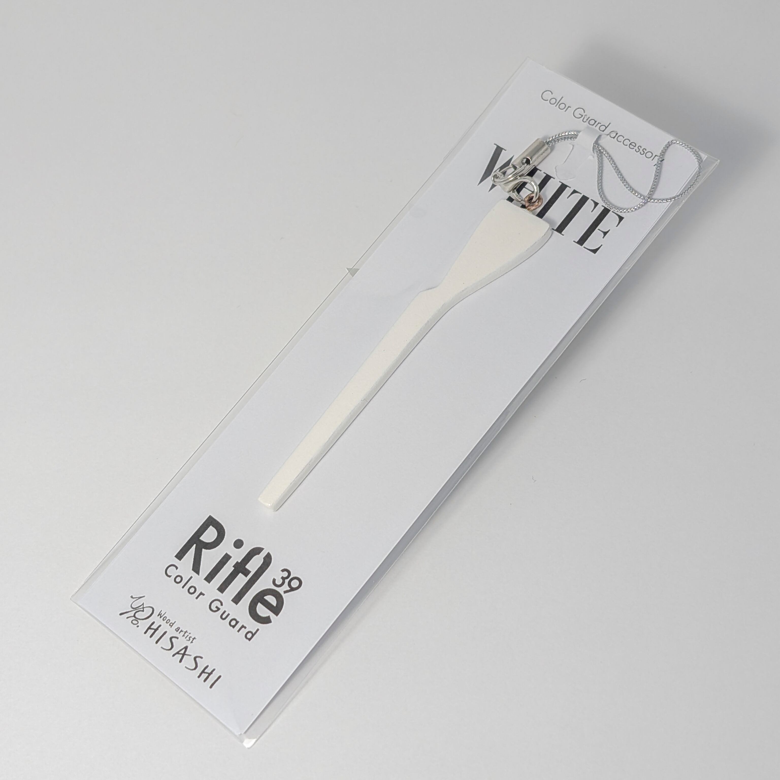 クラシカルな存在感を放つ、白塗装仕上げの木製ライフルチャーム。実物のライフルバトンのように何度も塗料を塗り重ねてライフル独特の感じを表現しています。